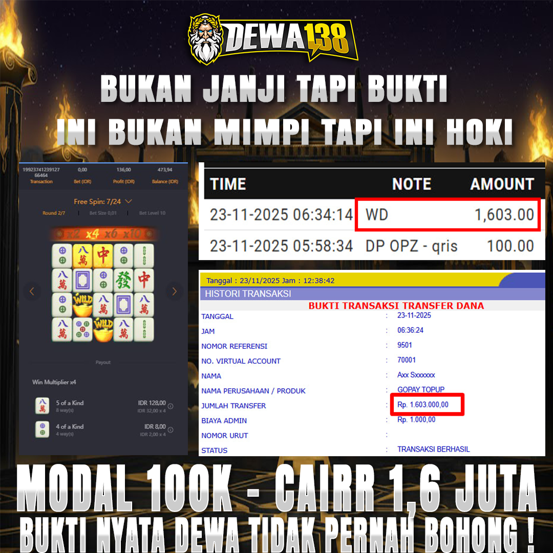 Cek sendiri DEWA138 tempat game jackpot dalam waktu singkat cuma di sini depo 100k bisa withdraw 1,6 juta Sudah di kasih bukti bukan janji yakin ga main?Rugi Dong!